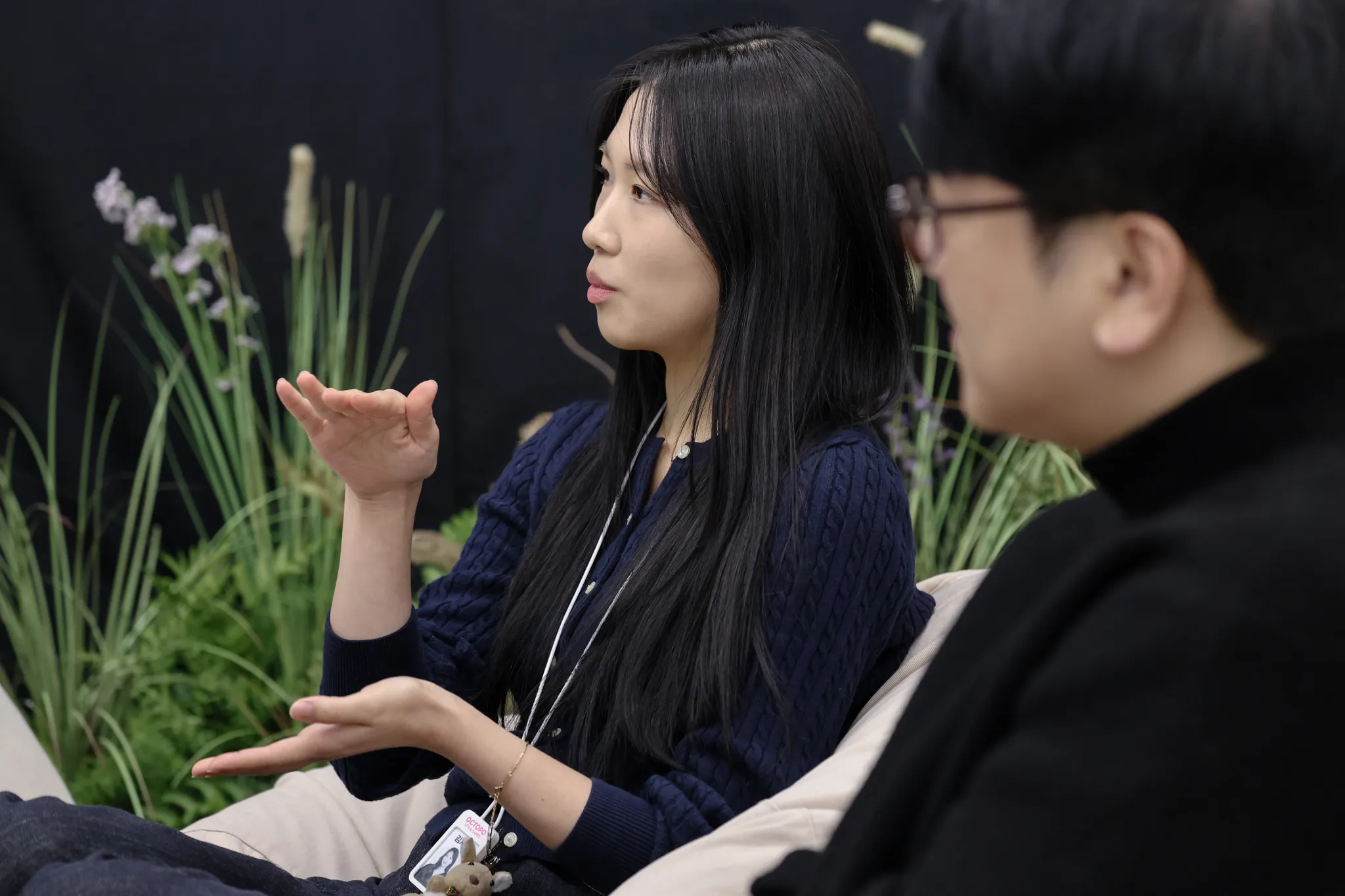 재환 : 저는 매월 타운홀 미팅을 할 때마다 놀라는 편이에요. 제가 성장했다는 걸 체감하기도 전에, 회사가 이미 한 발 앞서 성장해 있는 느낌이 들거든요. (웃음) 다른 팀들의 작업물 발표를 보거나, 준현님이 말씀해 주시는 문화나 방향성 같은 것들이 제가 이전 회사에서는 경험해 보지 못했던 부분이라 더 크게 와 닿아요. 특히 인상 깊었던 건, 준현님이 먼저 권위적인 태도를 내려놓는 모습이었어요. 그게 자연스럽게 조직 분위기에도 영향을 주고 있다고 생각합니다.