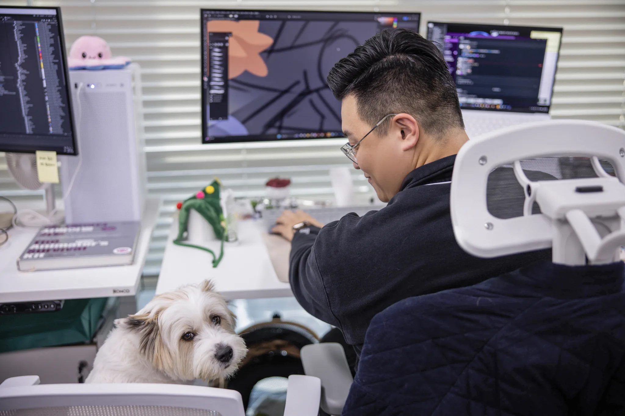재환 : 서영님과 제가 공통으로 느낄 것 같은데, 저는 반려동물 동반 출근이 인상 깊었어요. (웃음) 털 있는 동물이 같은 공간에 있어도 된다는 게 신기했어요. 무엇보다 동료들이 다 너무 자연스럽게 받아들이고 좋아해 주더라고요. 그리고 조직이 수평적이려고 하면 오히려 질서가 무너질 수도 있는데, 옥토포는 그 질서가 잘 잡혀 있다는 느낌을 받았어요. 준현님, 우현님, 유식님이 구성원들과 똑같이 휴가를 신청하는 모습도 그렇고요. 이렇게 편하게 소통하고, 심지어 회사에서 리더십 그룹이랑 편하게 술도 같이 마실 수 있는 회사가 또 있을까 싶어요. (웃음)